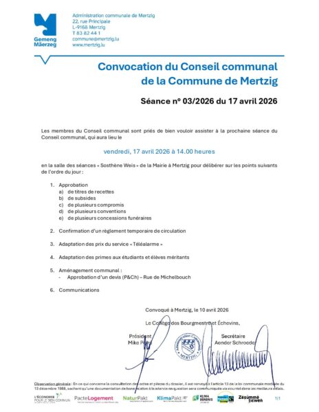 17.04.2026 – Réunion du Conseil Communal