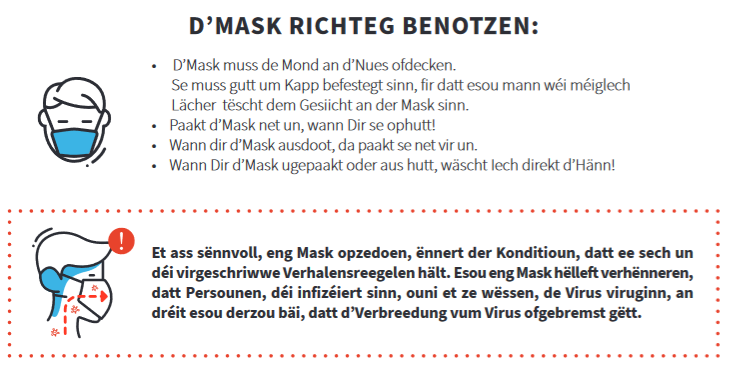 Suite à la distribution des masques, la question d’un usage multiple de ceux-ci se pose. Le SYVICOL (Syndicat des Villes et Communes luxembourgeoises) a demandé le Professeur Dr Claude P. Muller, expert en matière de virologie, comment les cinq masques fournis peuvent être utilisés plus longtemps.