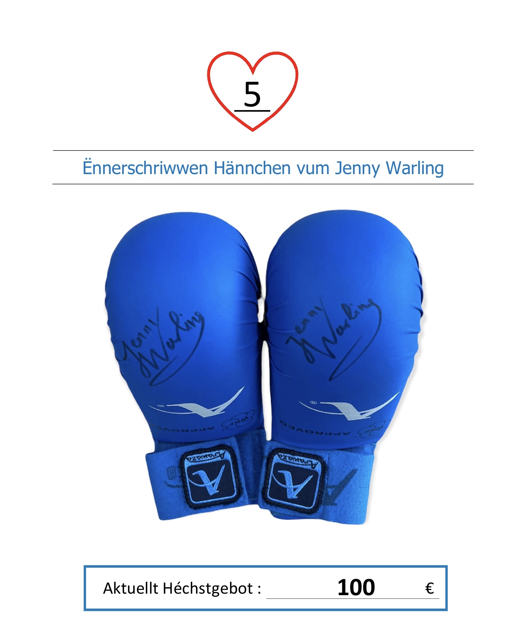 D’Mindestgebot fir all Objet läit bei 100€. Een Update vun de Präiser man mir all Dag an dat bis den 02. Mee!