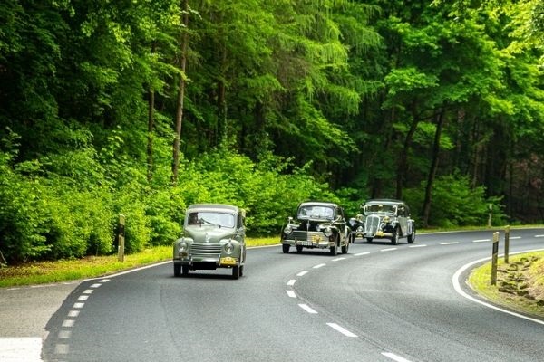 140 Oldtimer sinn um Départ. Géint 12.00 Auer wäert sech de Parking hannert der Gemeng dann als Auto-Musée verwandelen an d’Gefierer bleiwen do geparkt bis ca. 14.30 Auer.