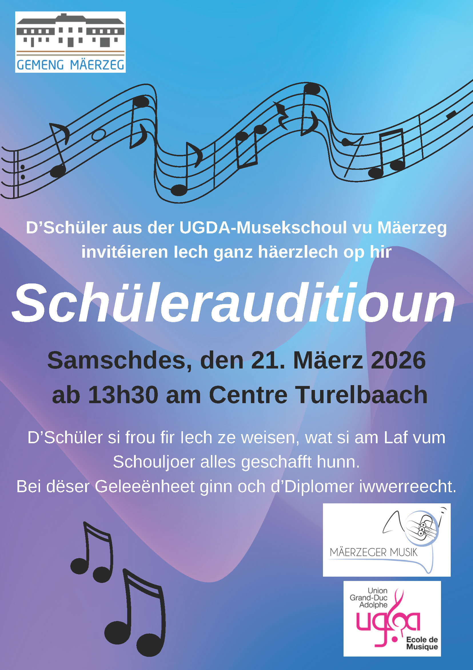 Mairie 22 Rue Principale, Mertzig, LuxembourgLe Conseil communal se réunit en date du vendredi, 13 mars 2026 à 14h00 pour délibérer sur les points suivants: Approbation de subsides de plusieurs compromis de la convention « OSNOS » Confirmation de plusieurs règlements temporaires de circulation Aménagement communal : Approbation de plusieurs morcellements Approbation de la charte « Gemengen 2030 » Communications Séance secrète Nomination d’un fonctionnaire ... Lire la suite