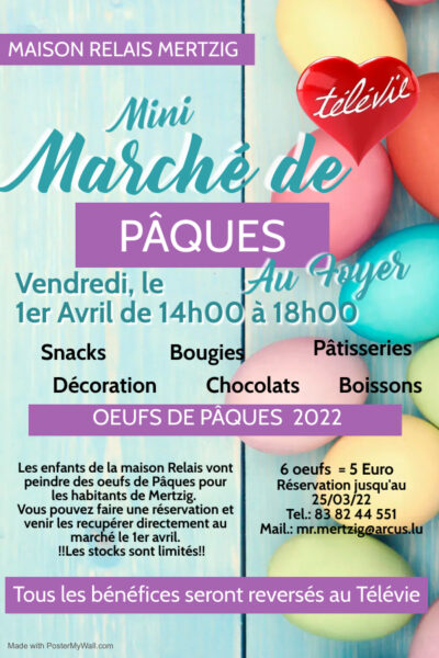 D’Maison Relais organiséiert den 1. Abrëll een Ouschtermaart beim Foyer.