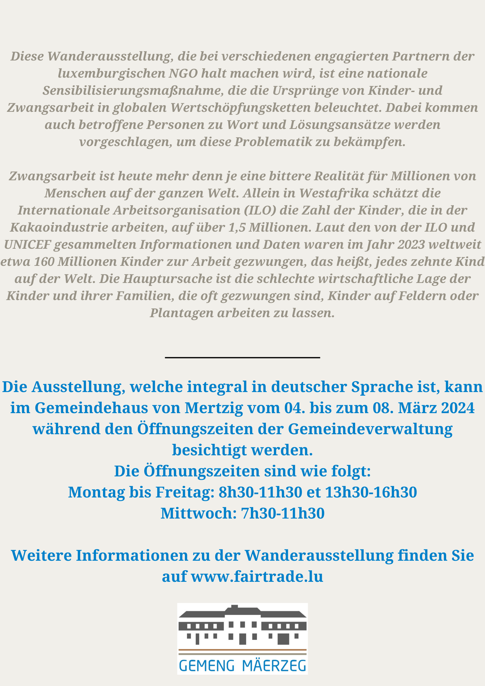 Wanderausstellung « Der Freiheit so fern – Kinder und Zwangsarbeit im 21. Jahrhundert »
