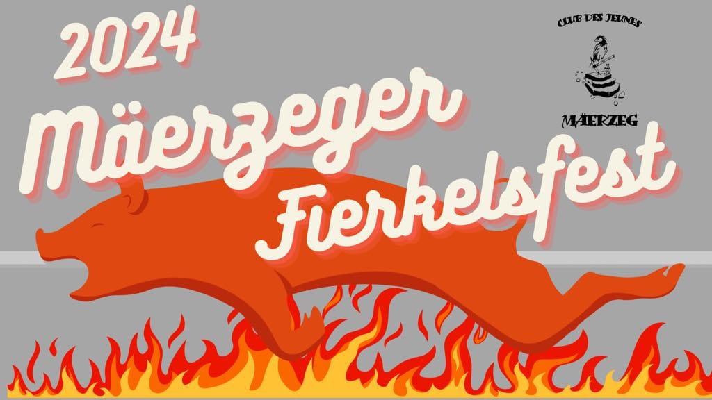 Al Schoul 31a rue Principale, Mertzig, LuxembourgProgramm 17h00 - Apéro 18h30 - Iessen MENU Fierkel mat gebroden Gromperen an Zalot: 22€ / Persoun Fir Kaffi an ee Stéck Taart: 5€ supplément Umellen - 20/05/2024 : mertzig.fierkelsfest@gmail.com 621 587 376 (Jimmy Gales) 691 550 135 (Sven Studer) GRILL De Grill ass op fir jiddereen, och ouni Umelldung.