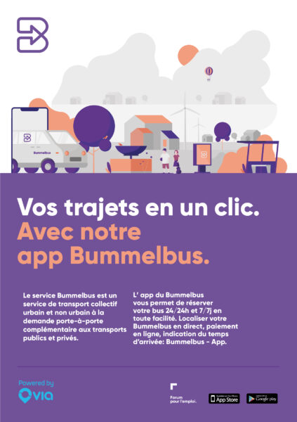 Le Bummelbus est un moyen de se déplacer de façon confortable, sûre et flexible. Toute personne peut profiter de ce service pour des trajets à courte distance, ceci surtout à l’intérieur du territoire communal et villes / villages voisins.